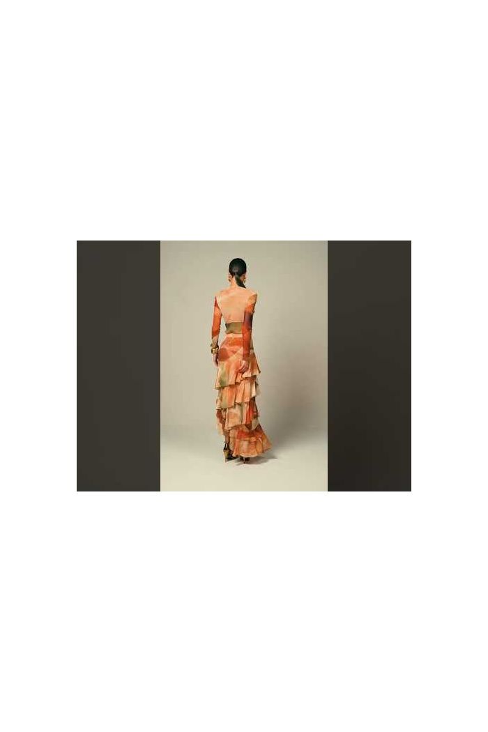 Tule estampado de gramatura moderada.