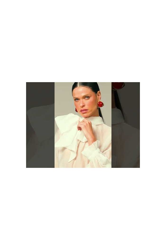 A blusa é confeccionada em crepe de rayon, um tecido de leve gramatura.