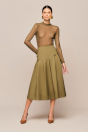 A peça apresenta modelagem justa ao corpo e mangas longas.