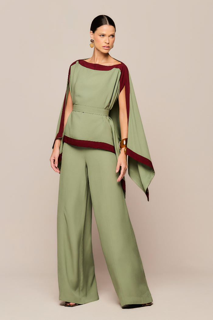 Conjunto confeccionado em crepe premium de rayon de alta