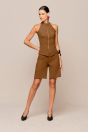 das costas. A bermuda que acompanha tem modelagem solta ao