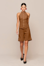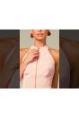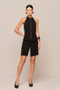 alta, zíper de metal destacável no centro da frente e elástico no centro